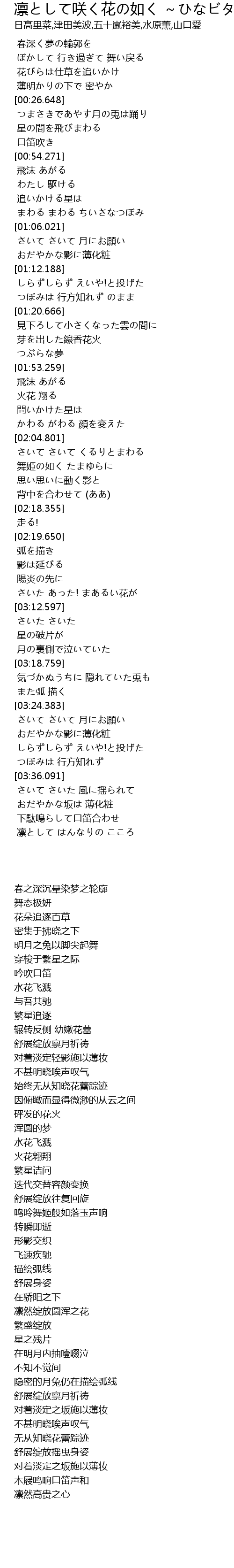 | [02:08.295] | 舞姫の如く たまゆらに |