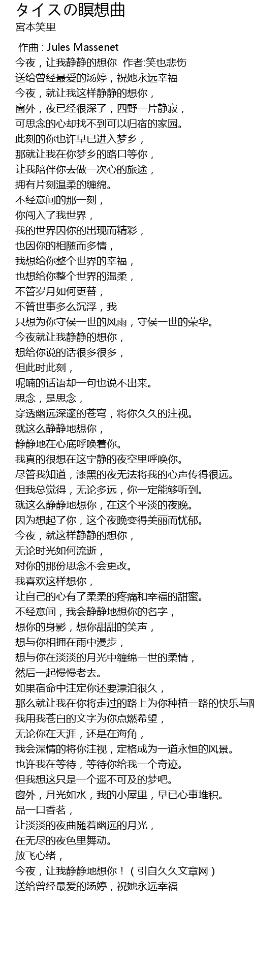 | [00:00.000] | zuò qǔ : Jules Massenet |