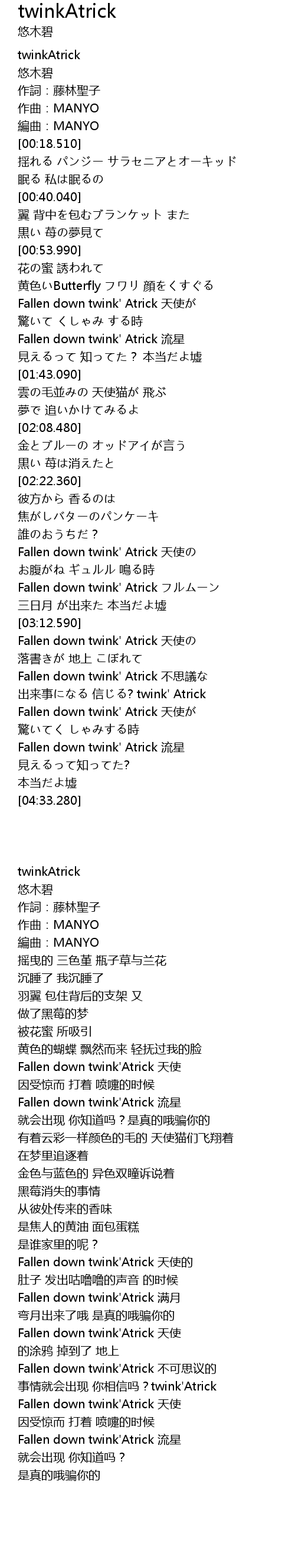 | [02:41.500] | Fallen down twink' Atrick 天使の |