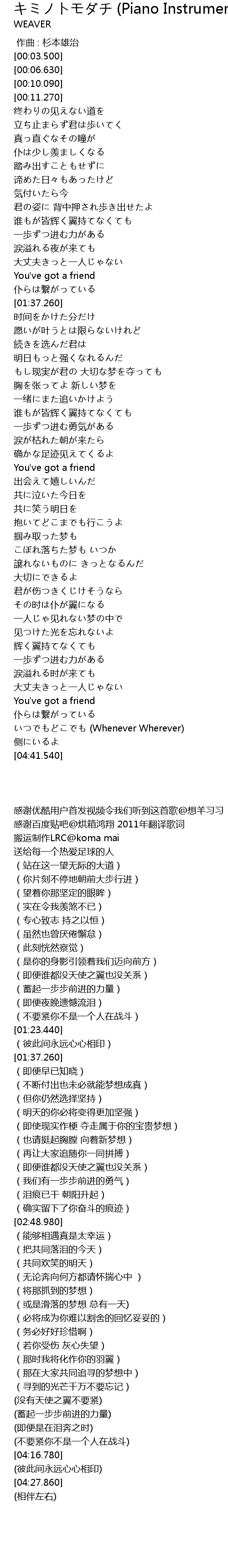 | [04:11.340] | 大丈夫きっと一人じゃない |