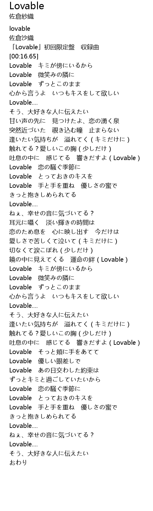 | [00:12.05] | 「Lovable」初回限定盤 収録曲 |