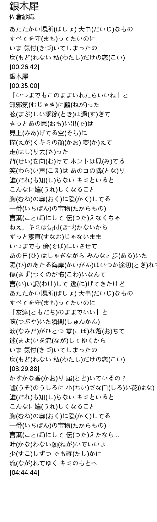 | [00:04.03] | あたたかい場所(ばしょ) 大事(だいじ)なもの |