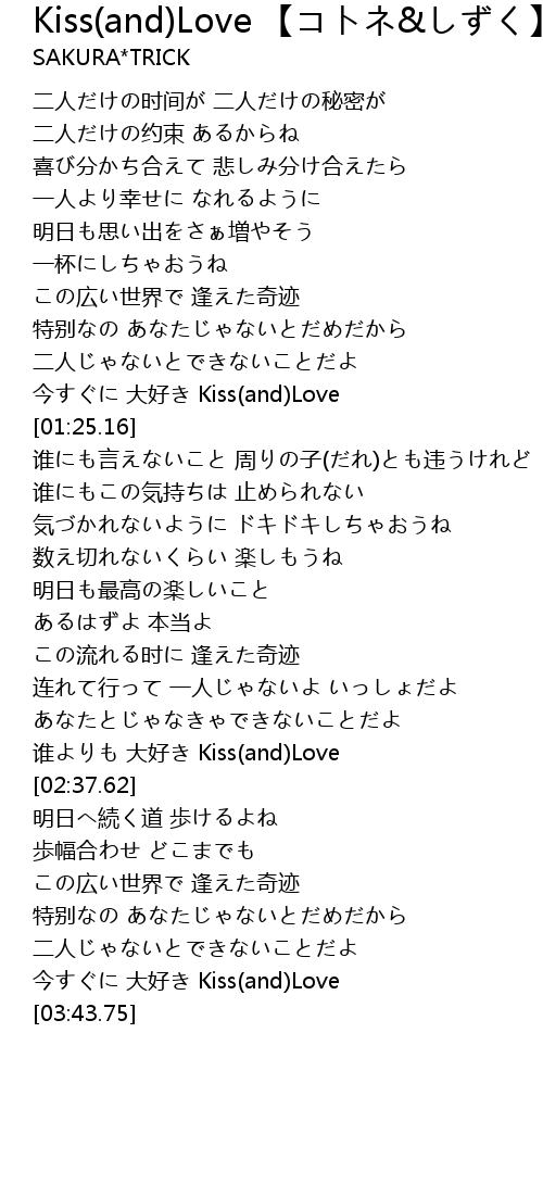 | [03:37.38] | 今すぐに 大好き Kiss(and)Love |
