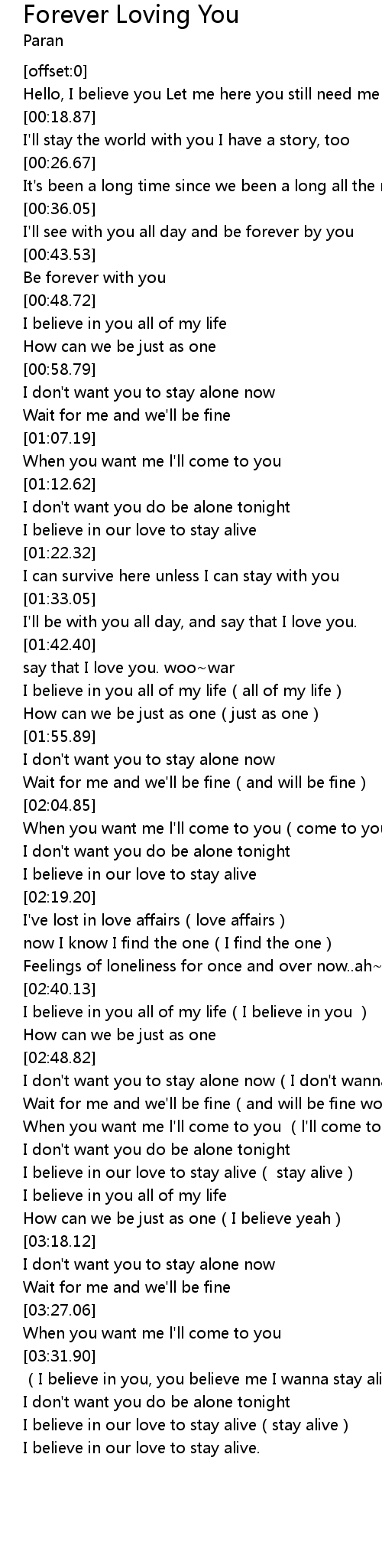 | [03:32.92] | (I believe in you, you believe me I wanna stay alive) |