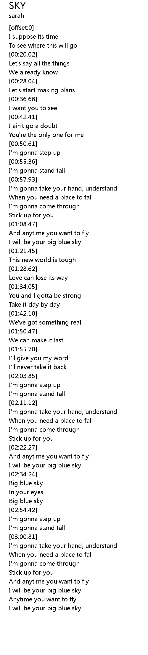 | [03:18.28] | I will be your big blue sky |