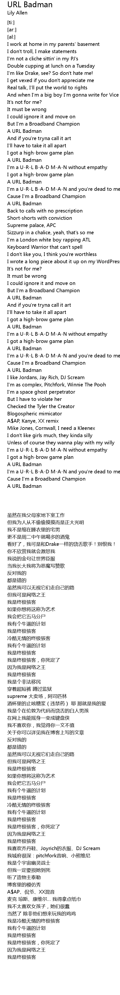 I'm a U-R-L B-A-D M-A-N and you're dead to me |