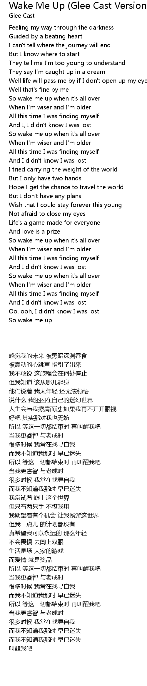 Wake Me Up (Glee Cast Version) Lyrics