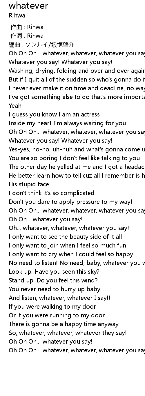 | [00:03.77] | Oh Oh Oh... whatever, whatever, whatever you say! |