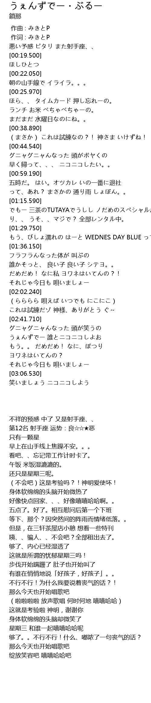 | [01:30.610] | rú WEDNES DAY BLUE ! |