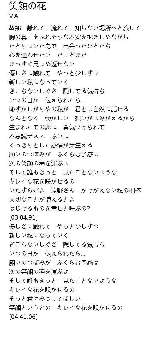 | [04:31.33] | 笑顔という名の キレイな花を咲かせるの |