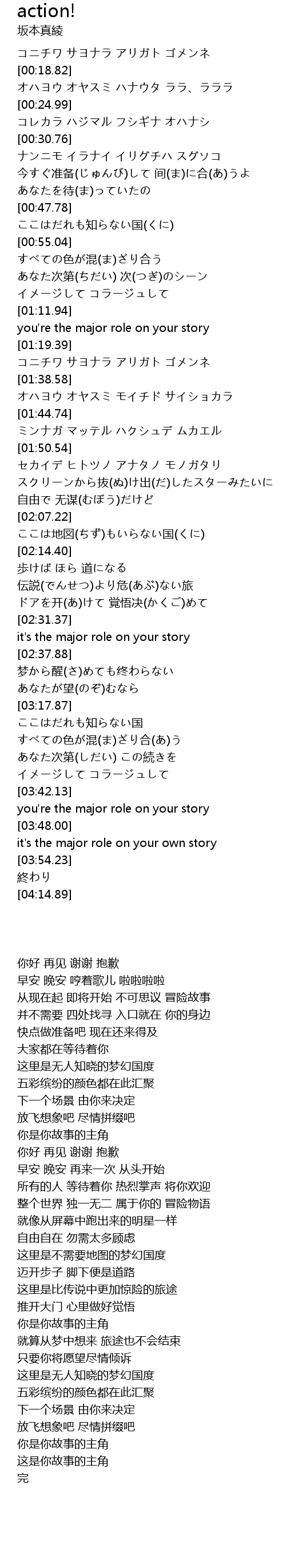 | [00:13.63] | コニチワ サヨナラ アリガト ゴメンネ |