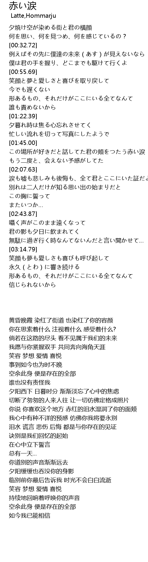 | [01:45.80] | この場所が好きだと話してた君の頬をつたう赤い涙 |