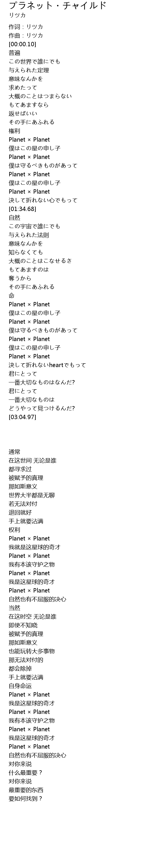 作词:リツカ |