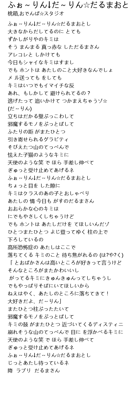 | [00:00.310] | ふぉ~りん↓だ~りん☆だるまおとし |
