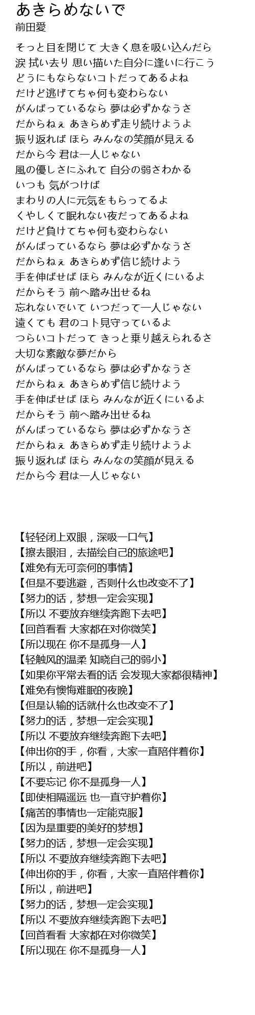 | [04:47.86] | だからねぇ あきらめず走り続けようよ |
