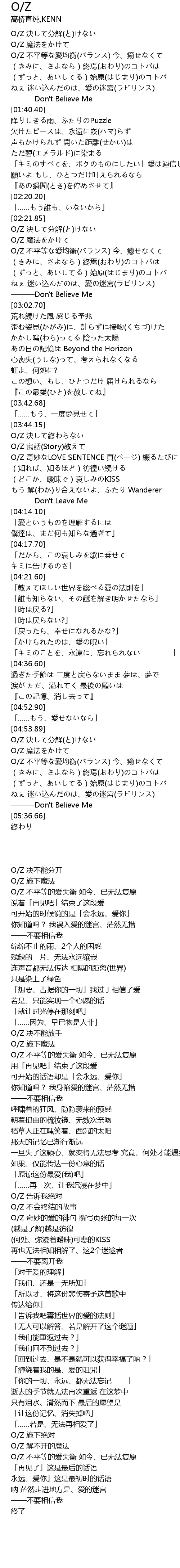 | [02:24.53] | O/Z 魔法をかけて |