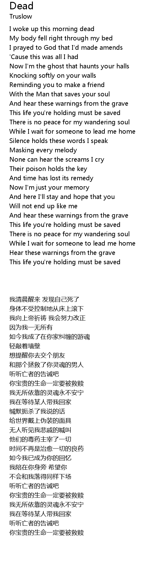 | [00:00.000] | I woke up this morning dead |