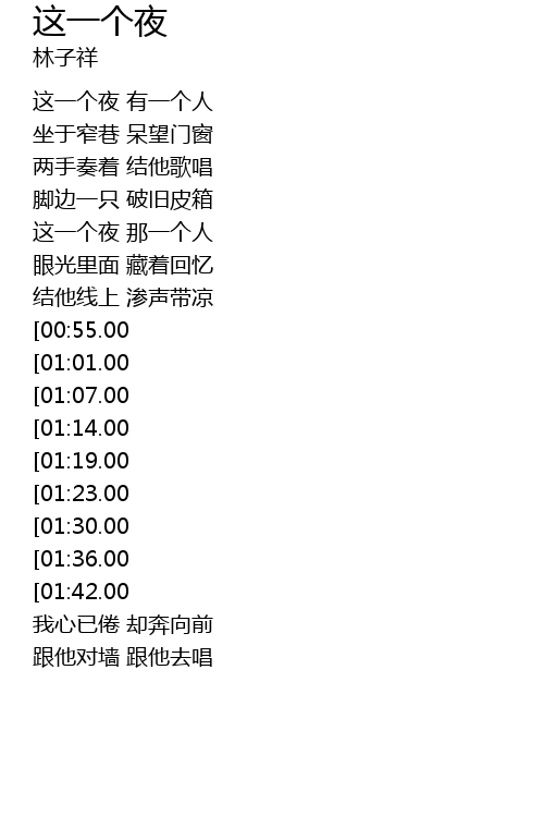 | [02:39.00][01:23.00] | zhe yi ge ye wo yi ge ren |