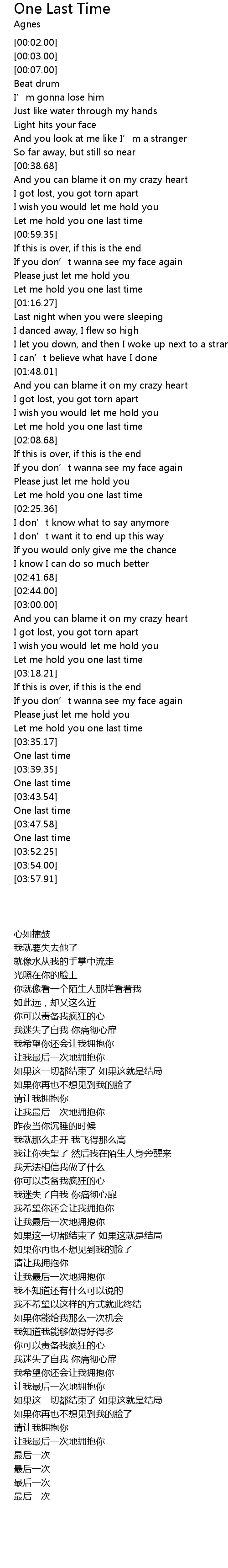 | [02:22.14] | Let me hold you one last time |