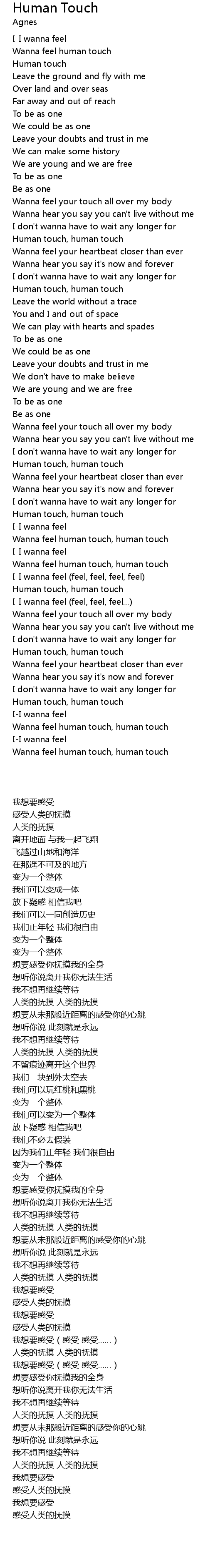 | [02:19.11] | Wanna feel human touch, human touch |