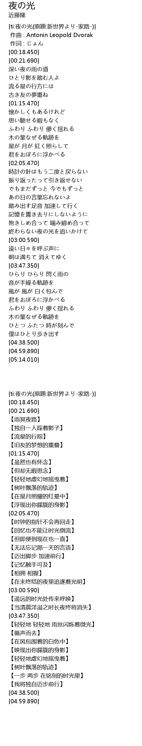 | [ti:夜の光(原題:新世界より-家路-)] | |