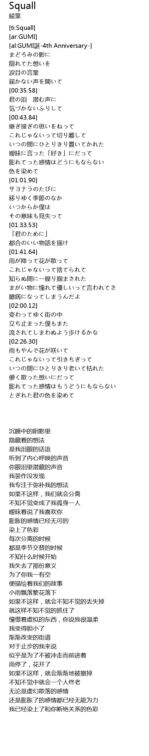 | [00:55.71] | 膨れてった感情はどうにもならない |