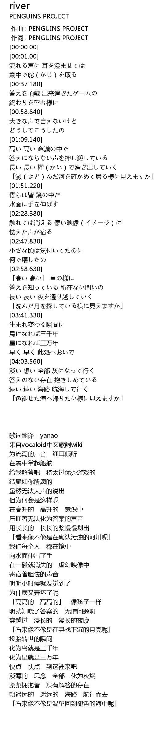 | [00:00.00] | 作词 : PENGUINS PROJECT |