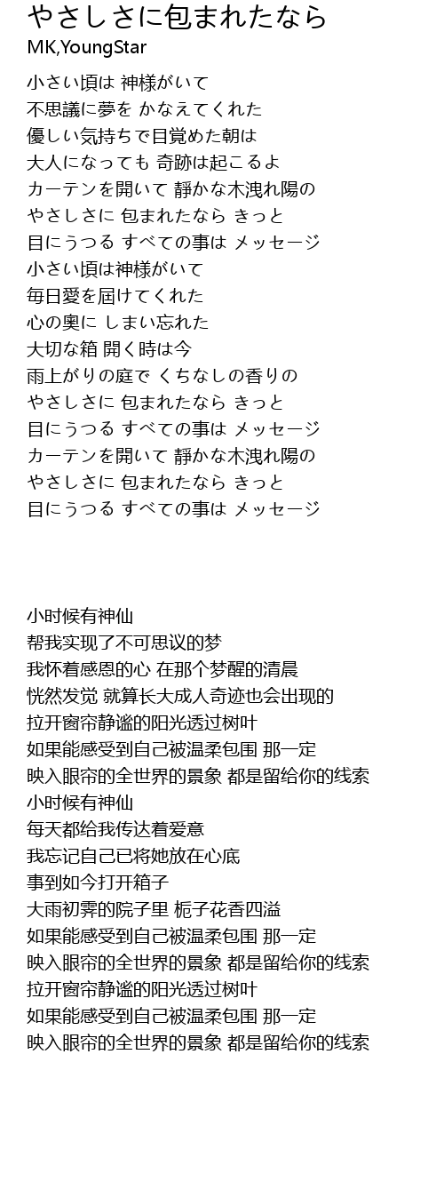 | [02:32.65] | やさしさに 包まれたなら きっと |