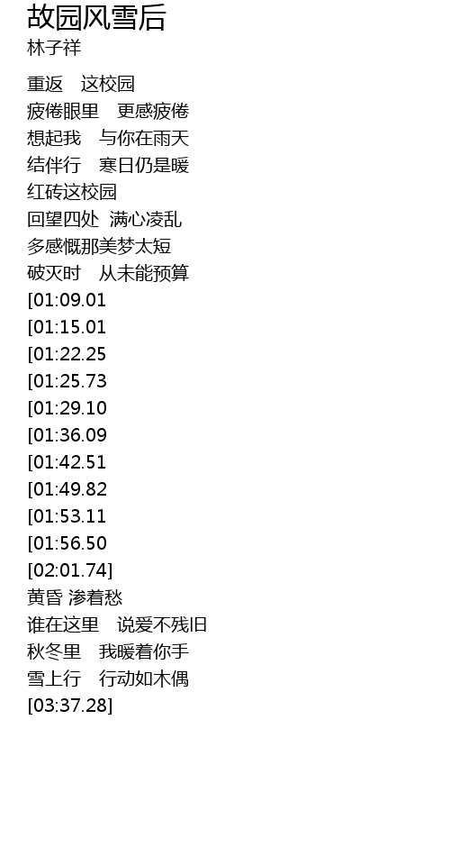 | [03:10.25][01:36.09] | 故园风雪后 |