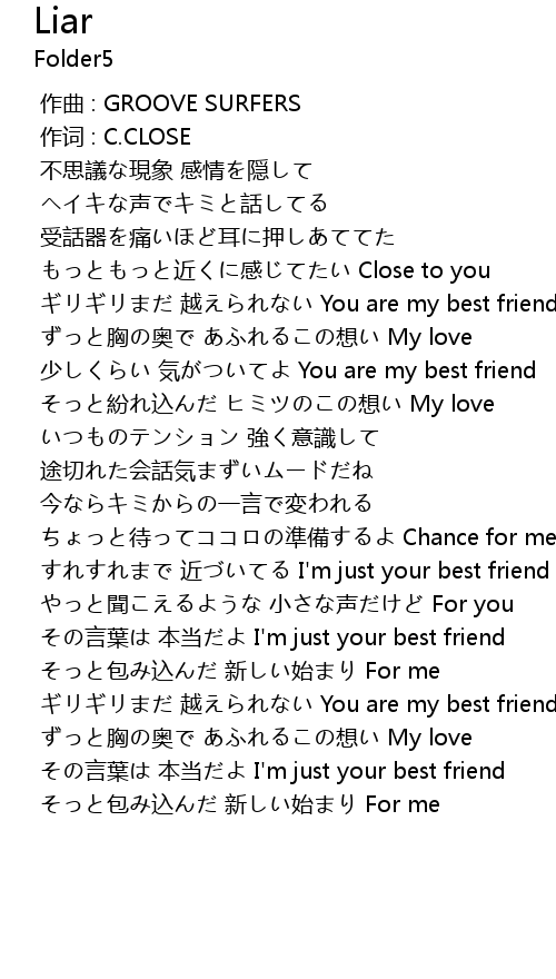 | [00:58.328] | ギリギリまだ 越えられない You are my best friend |