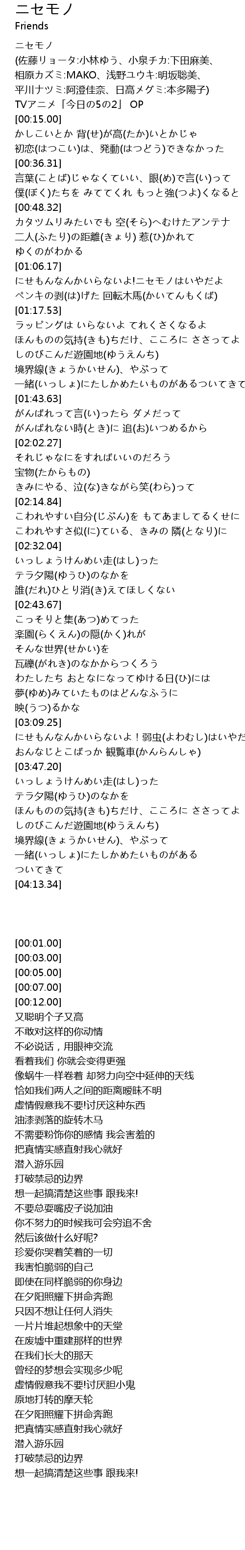 | [00:12.00] | TVアニメ「今日の5の2」 OP |