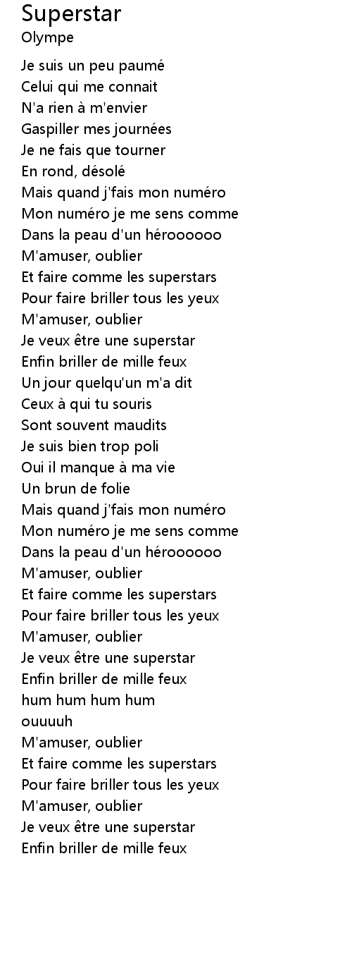 | [00:29.160] | Mais quand j' fais mon numé ro |
