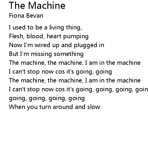 | The machine, the machine, I am in the machine | |