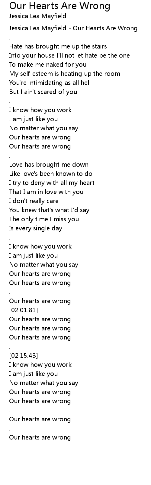 [00:00.27] Jessica Lea Mayfield - Our Hearts Are Wrong
