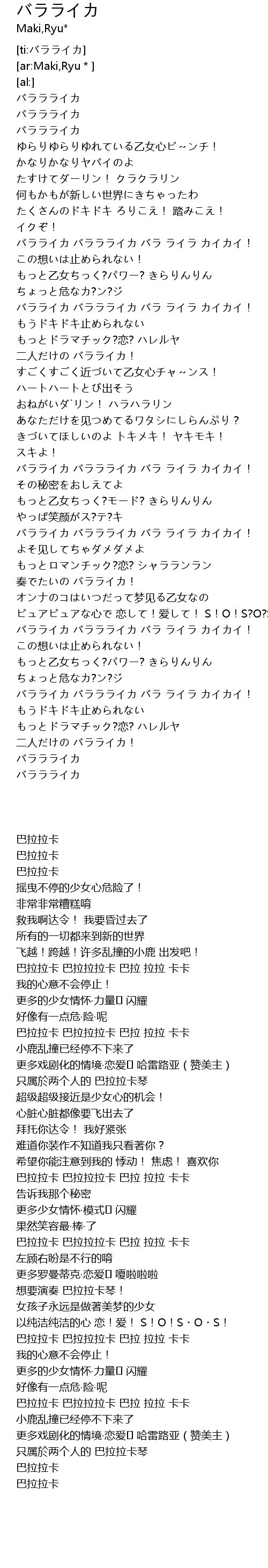 | [02:33.14] | バラライカ バララライカ バラ ライラ カイカイ! |