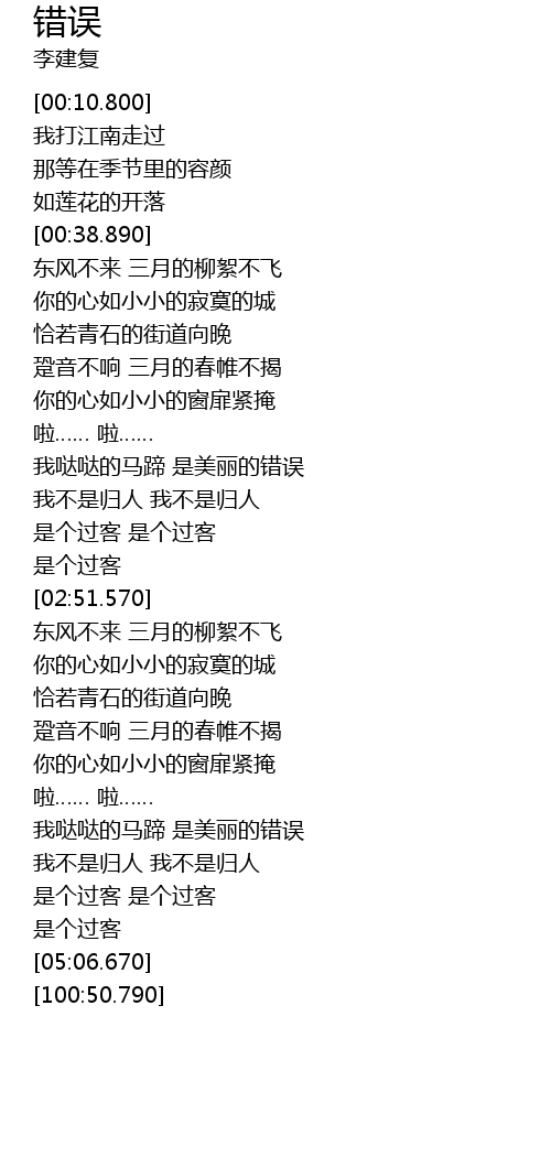 | [04:42.990] | 是个过客 是个过客 |