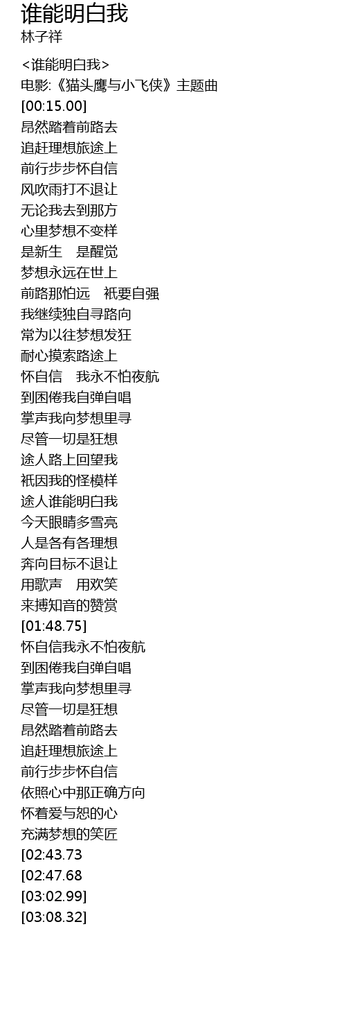 | [02:55.94][02:47.68] | 来搏知音的赞赏 |