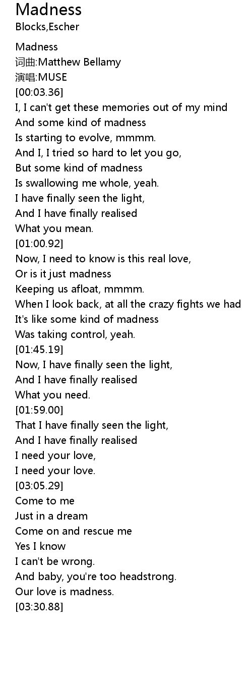 | [01:34.64] | It' s like some kind of madness |