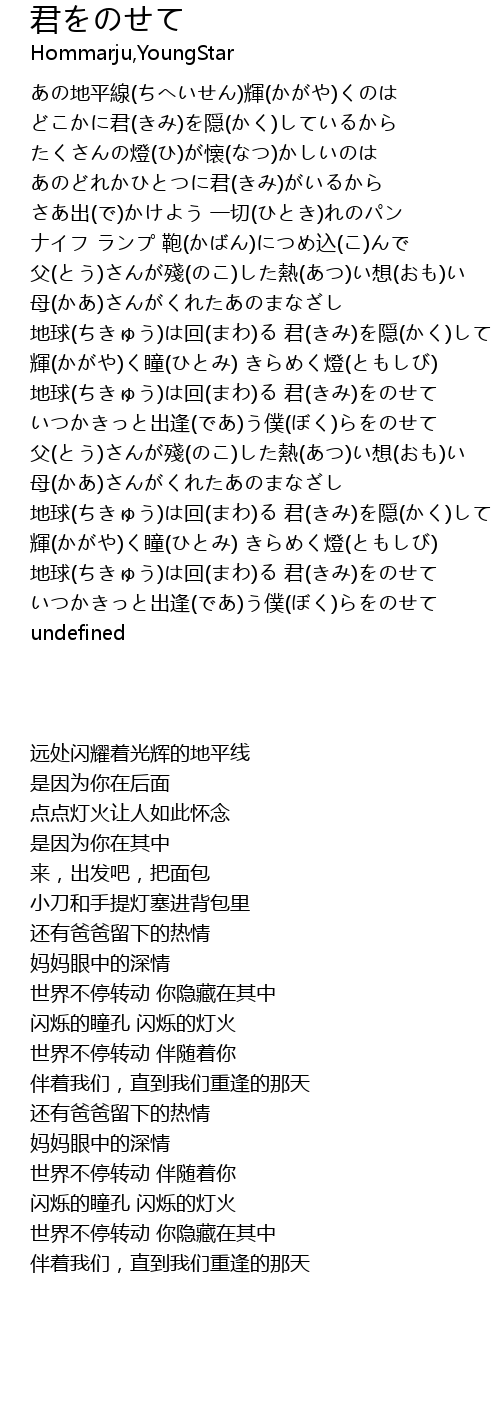 | [01:16.58] | いつかきっと出逢(であ)う僕(ぼく)らをのせて |