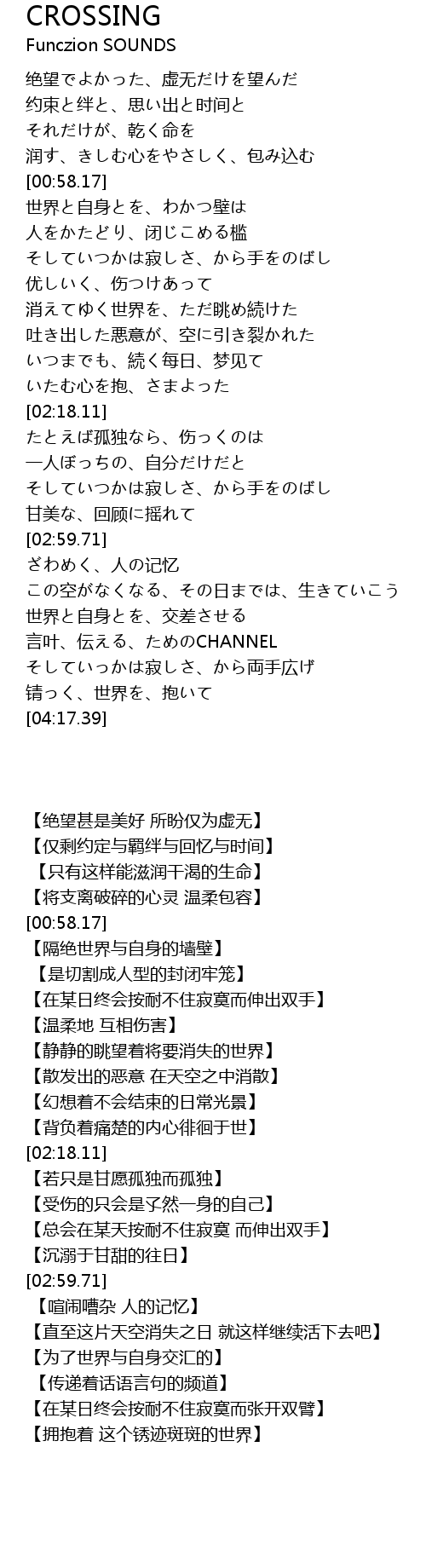 | [03:45.65] | 言叶、伝える、ためのCHANNEL |