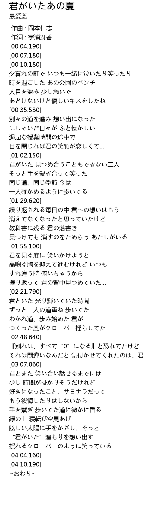 | [03:51.360] | “君がいた”温もりを想い出す |