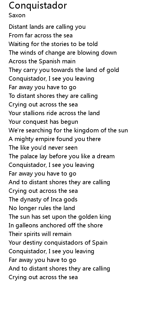 Conquistador, I see you leaving |