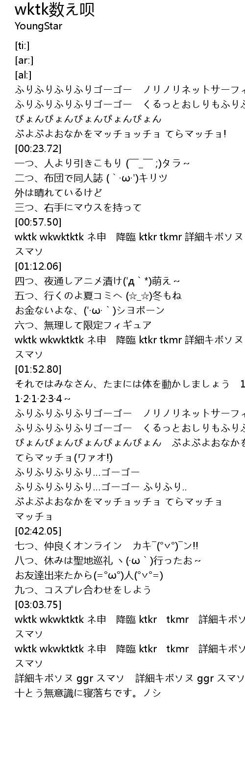 | [02:03.59] | ふりふりふりふりゴーゴー ノリノリネットサーフィン |