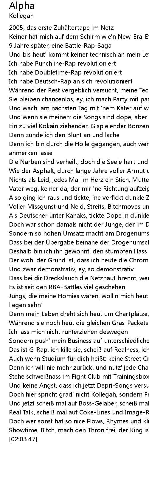 | [01:55.08] | Real Talk, schei mal auf CokeLines und ImageRap |