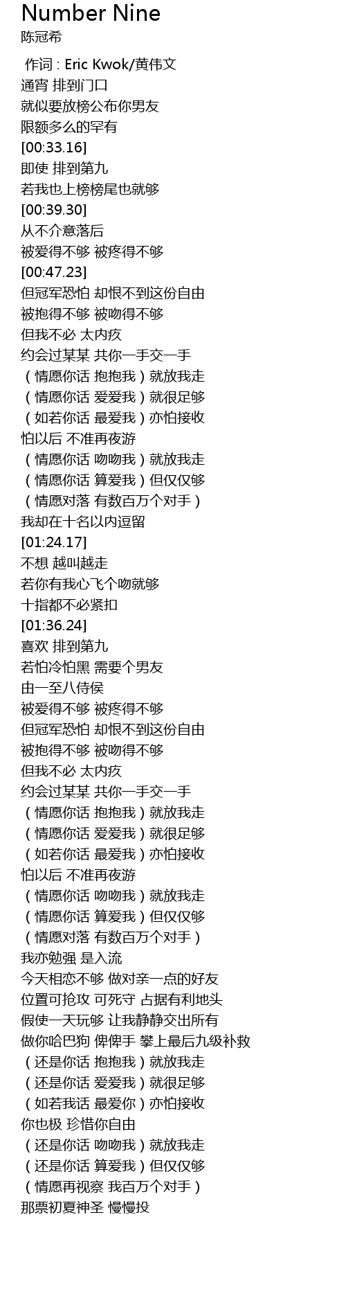 | [00:00.00] | 作词 : Eric Kwok/黄伟文 |