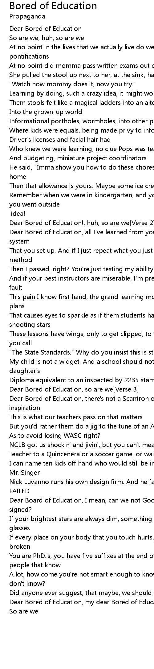Dear Bored of Education!, huh, so are we[Verse 2] |