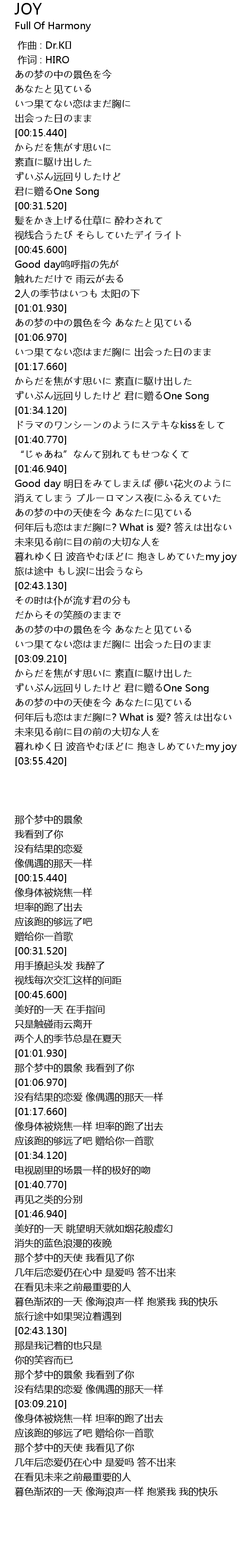| [03:45.430] | 暮れゆく日 波音やむほどに 抱きしめていたmy joy |