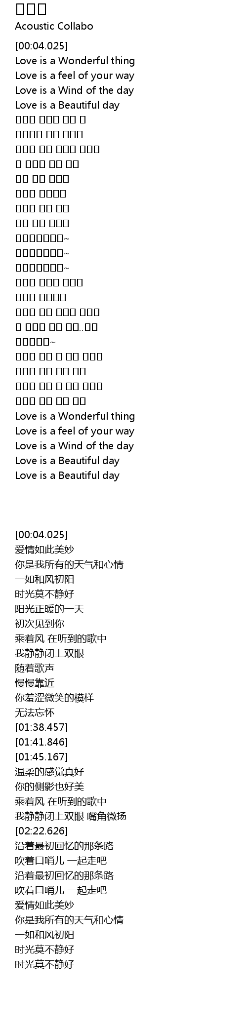 | [00:07.008] | Love is a Wonderful thing |