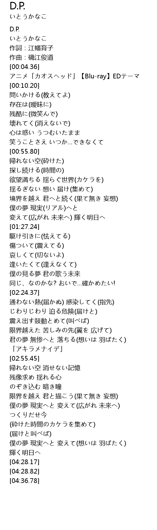 | [00:05.72] | アニメ「カオスヘッド」【Blu-ray】EDテーマ |