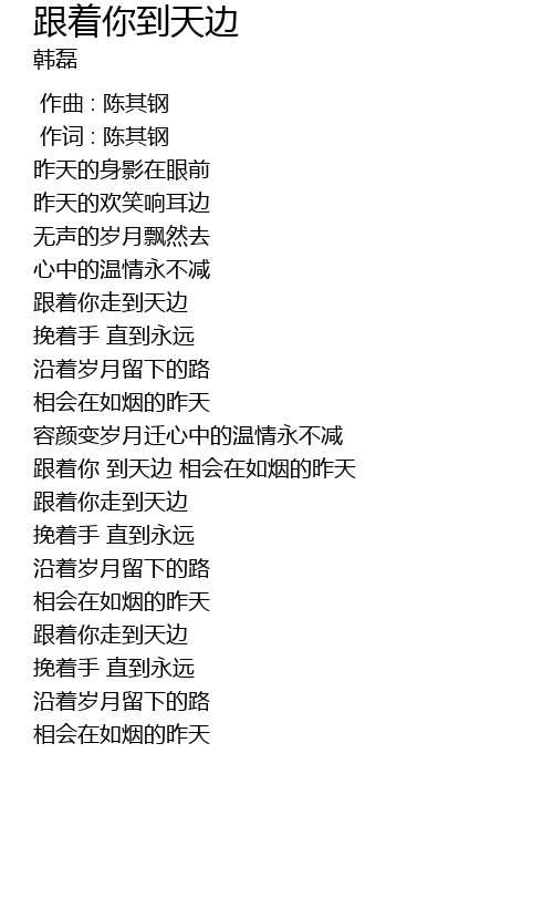 | [02:25.460] | 跟着你 到天边 相会在如烟的昨天 |